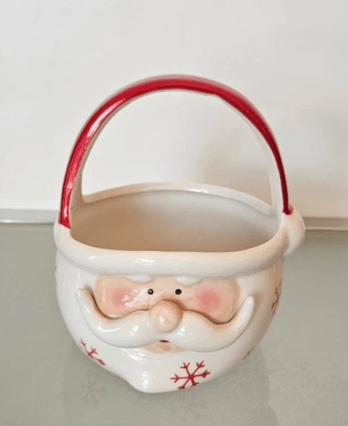 Santa Ceramic Basket 16cm / Cesta de Cerâmica de Papai Noel 16cm - R$ 42,00